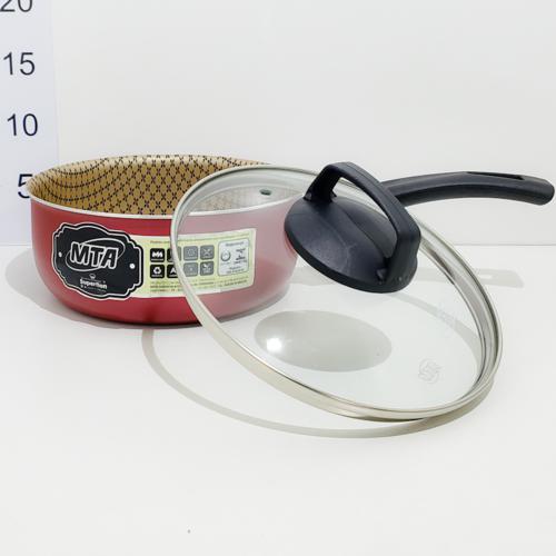 cacerola 18cm roja mango y antiadherente. tapa de vidrio flora art.17546