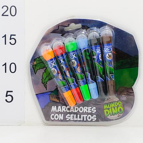 Marcadores Con Sellitos Blowpen 6 Colores Mundo Dino