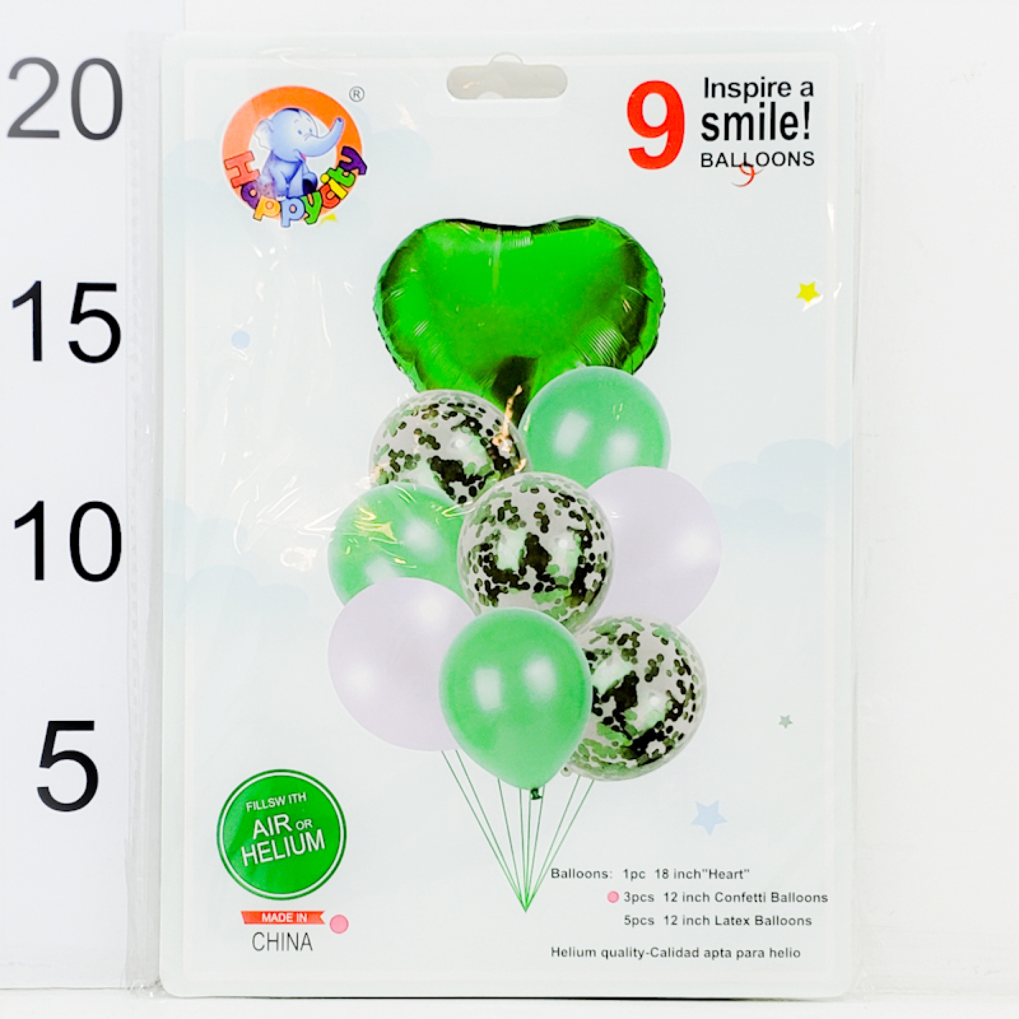 Set 9 Globos (1 Corazón, 3 Confetti, 5 Lisos) - Verde