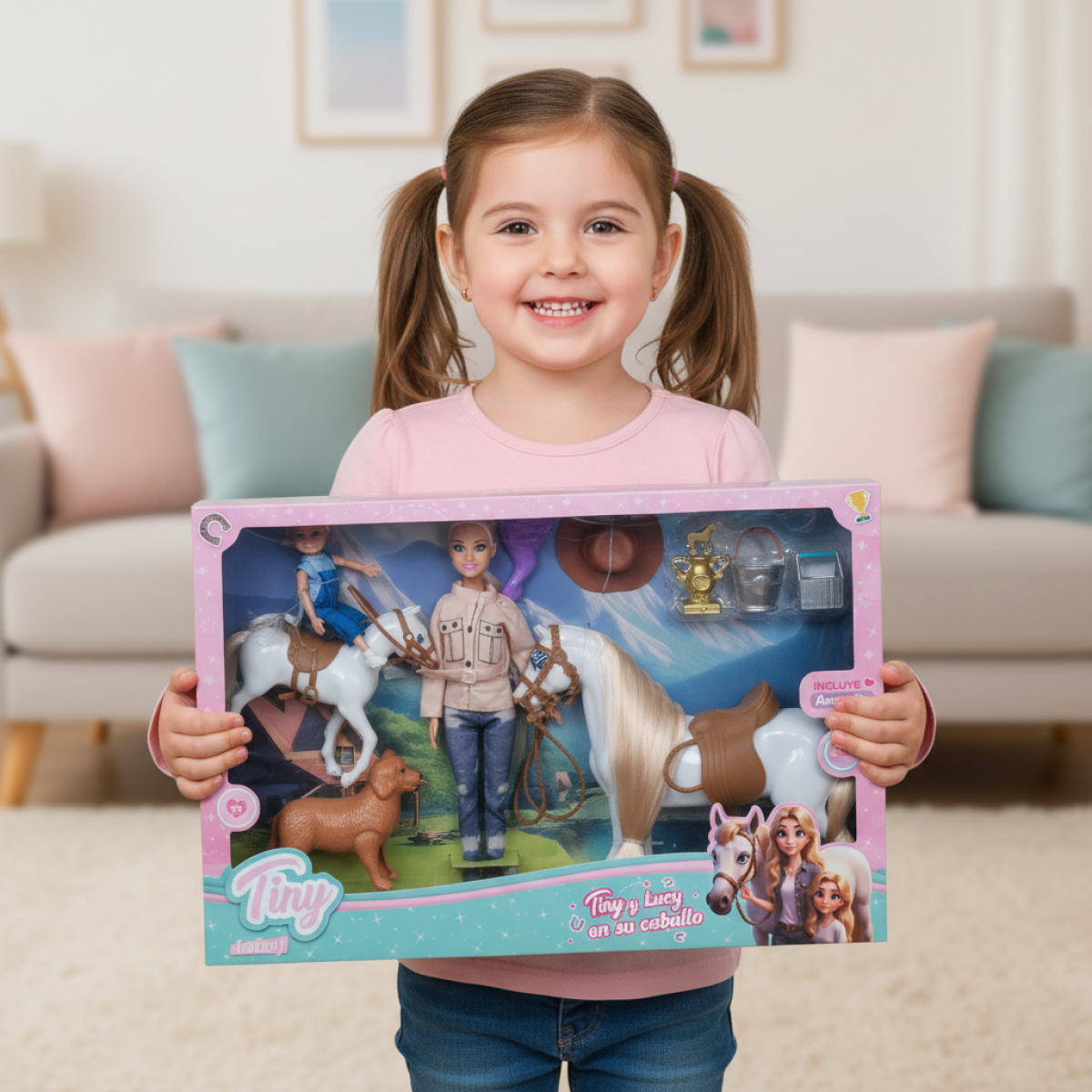 muñeca TINY c/caballo en caja 48x32cm art.55862