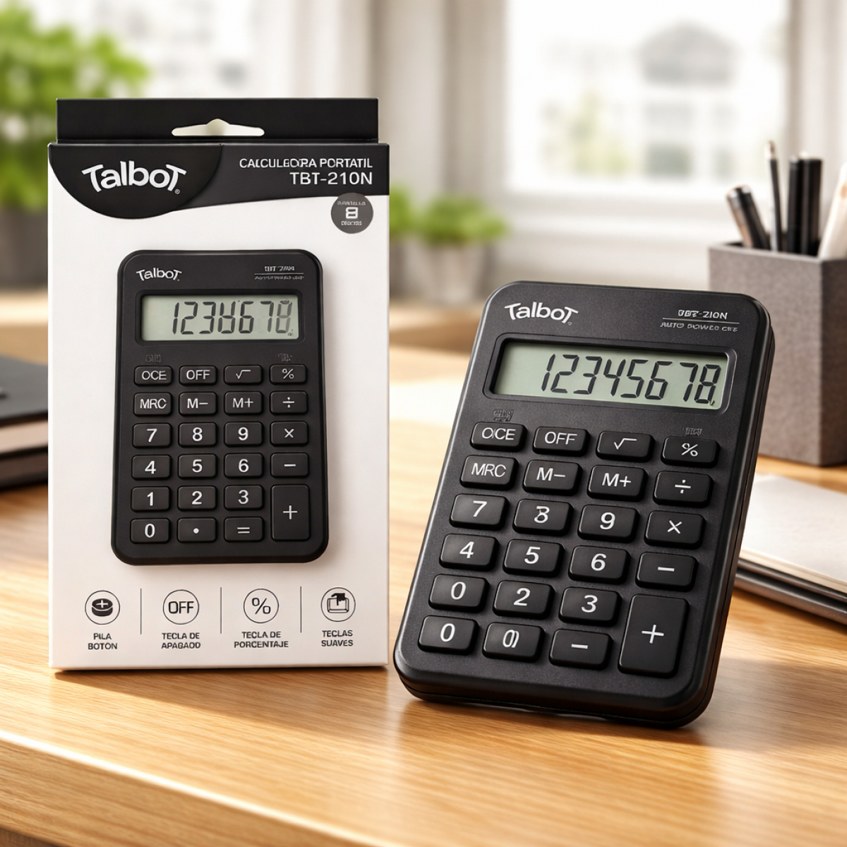 calculadora portatil TALBOT 8 digitos NEGRA TBT-210N