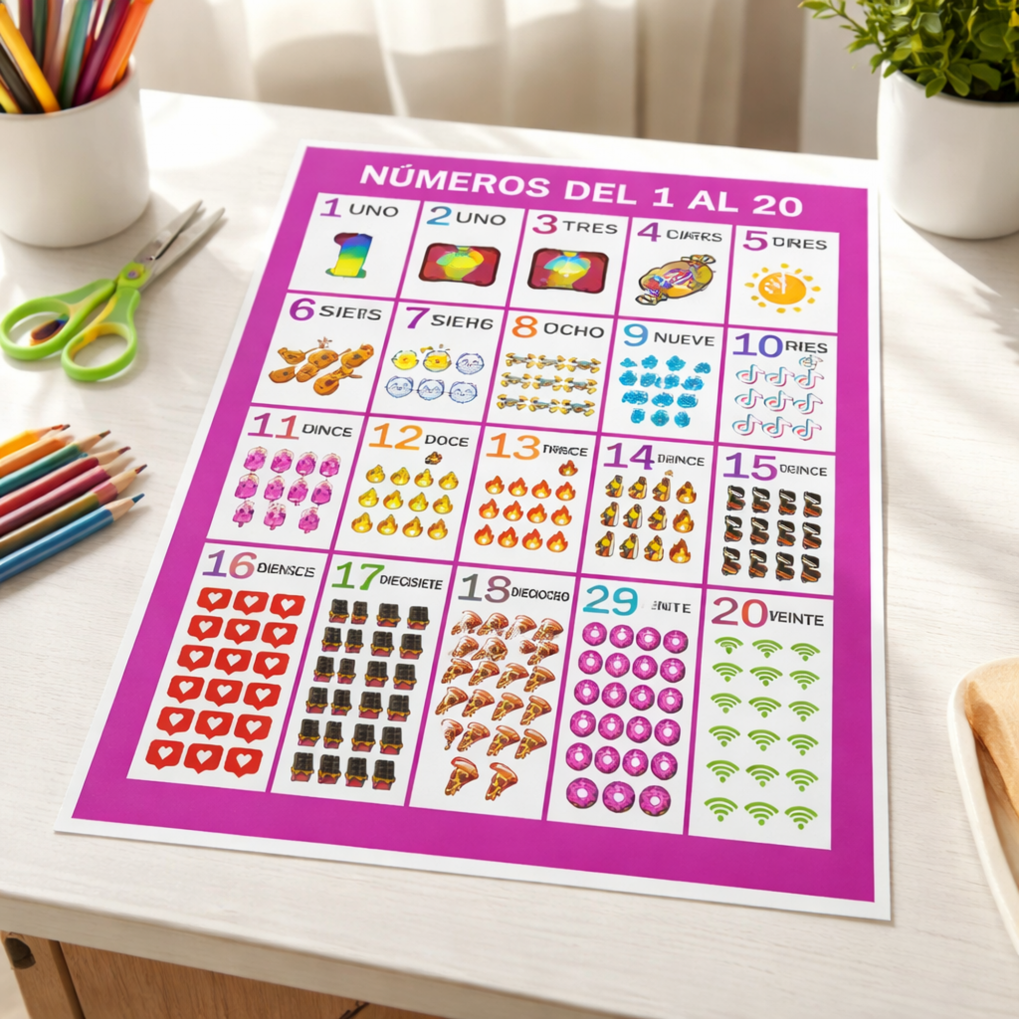 lamina escolar NUMEROS DEL 1 AL 20 80x60CM