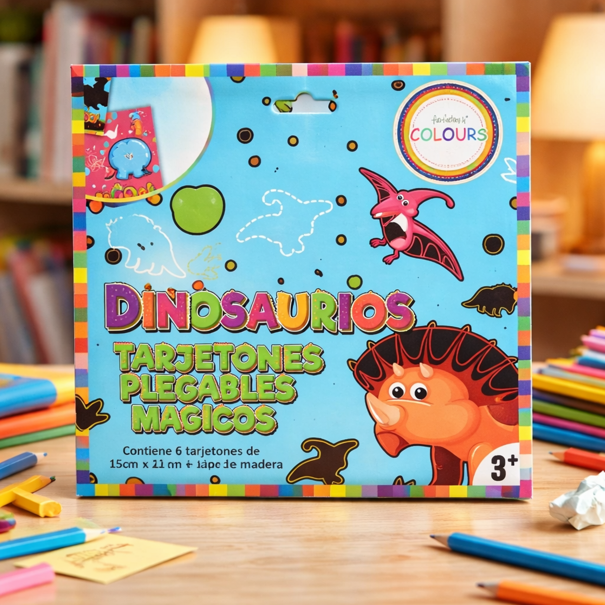 papel magico tarjetones plegable DINO 6hoja c/1 lapiz madena art.27942