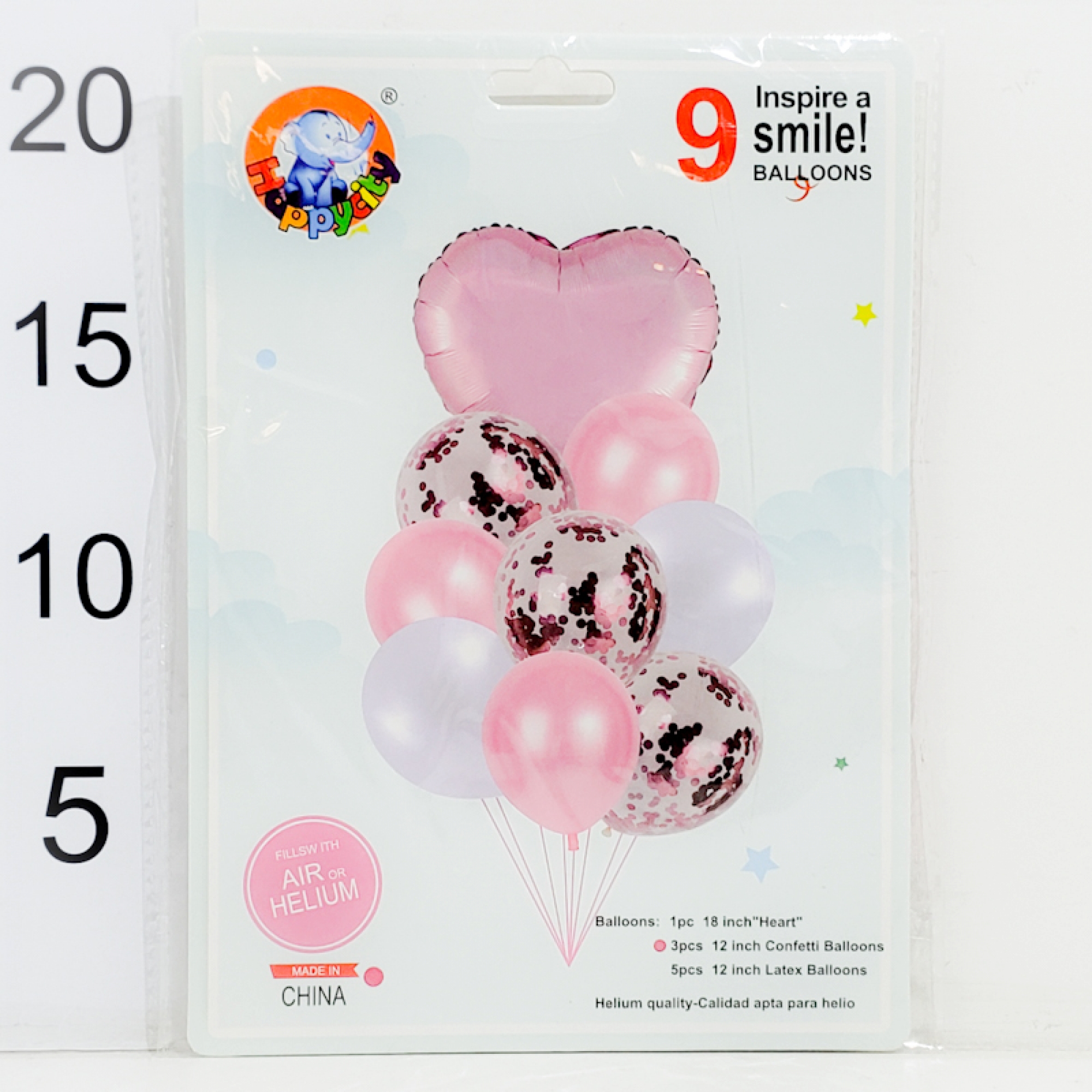 set 9 globos (1 corazón, 3 confetti, 5 lisos) - rosa