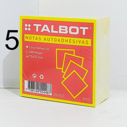 notas autoadhesivas talbot 75x75 mm x 400 hojas amarillo
