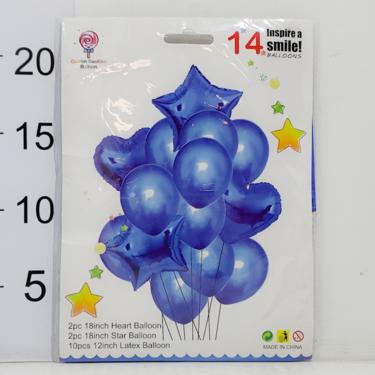 set globos 14 unidades (2 corazones, 2 estrellas, 10 lisos) - azul