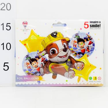 set globos paw patrol 5 unidades (1 personaje rubble, 2 estrellas, 2 circulares)