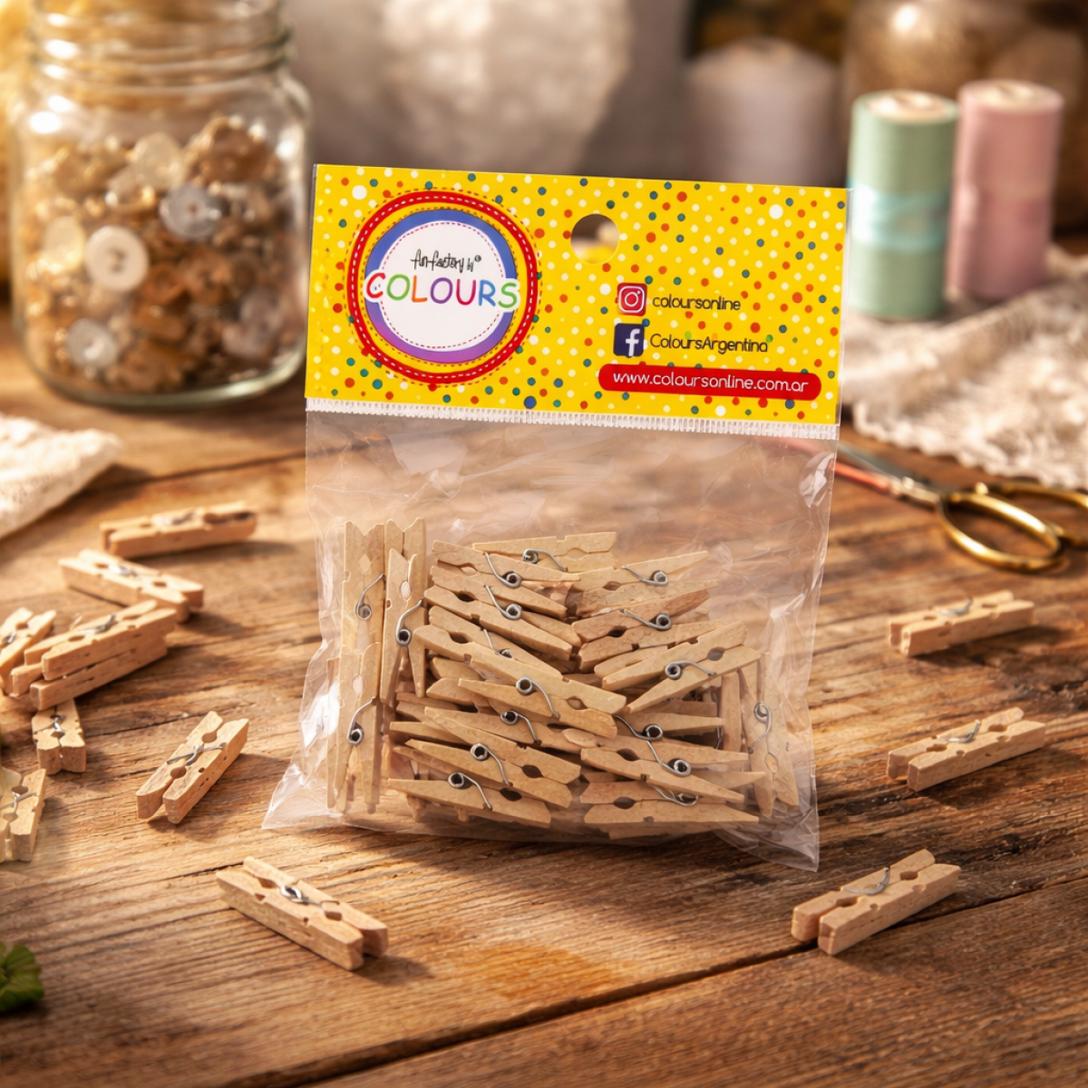 broche de madera natural 3cm x 36 unidades
