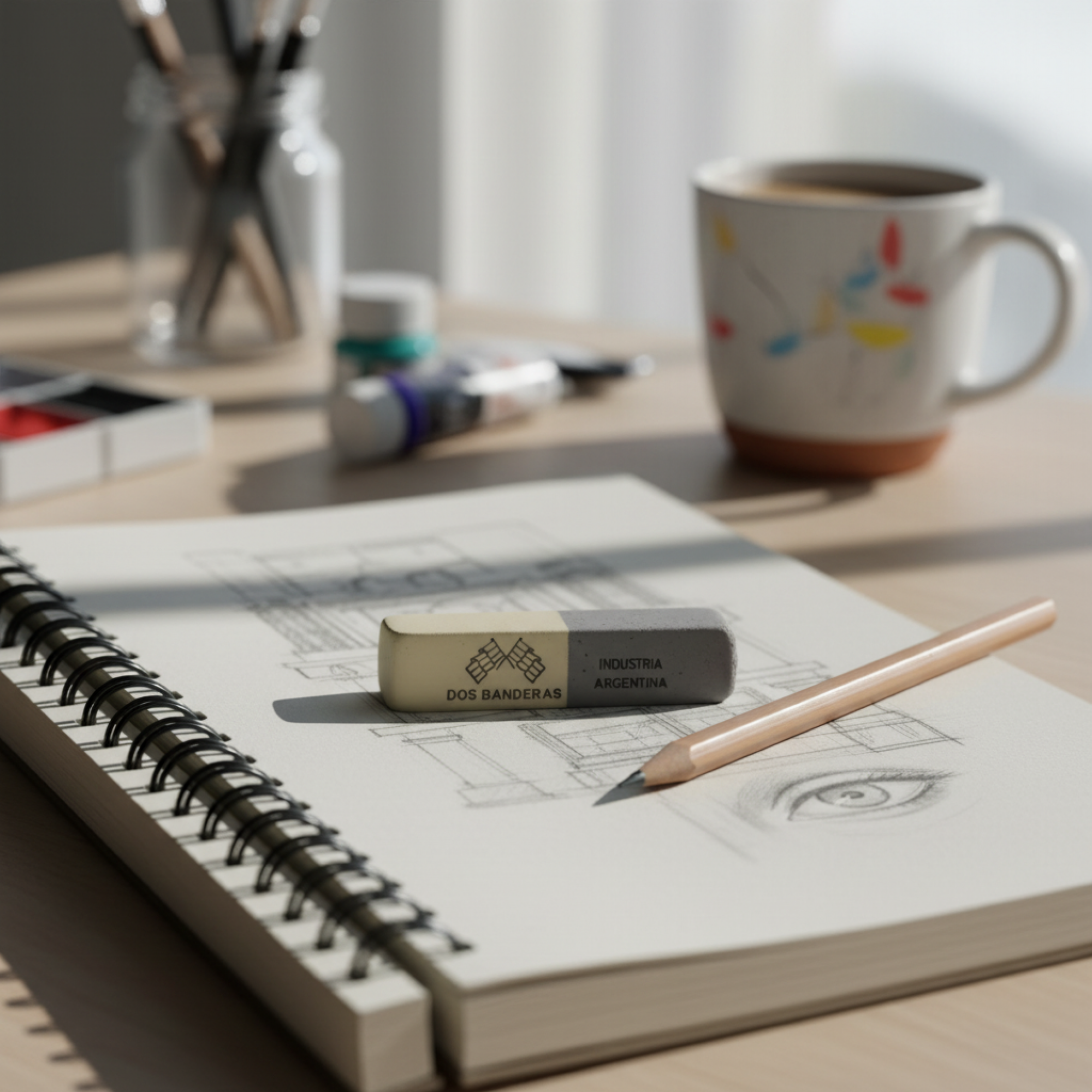 goma de borra 2 banderas 211 lapiz y tinta x1pcs