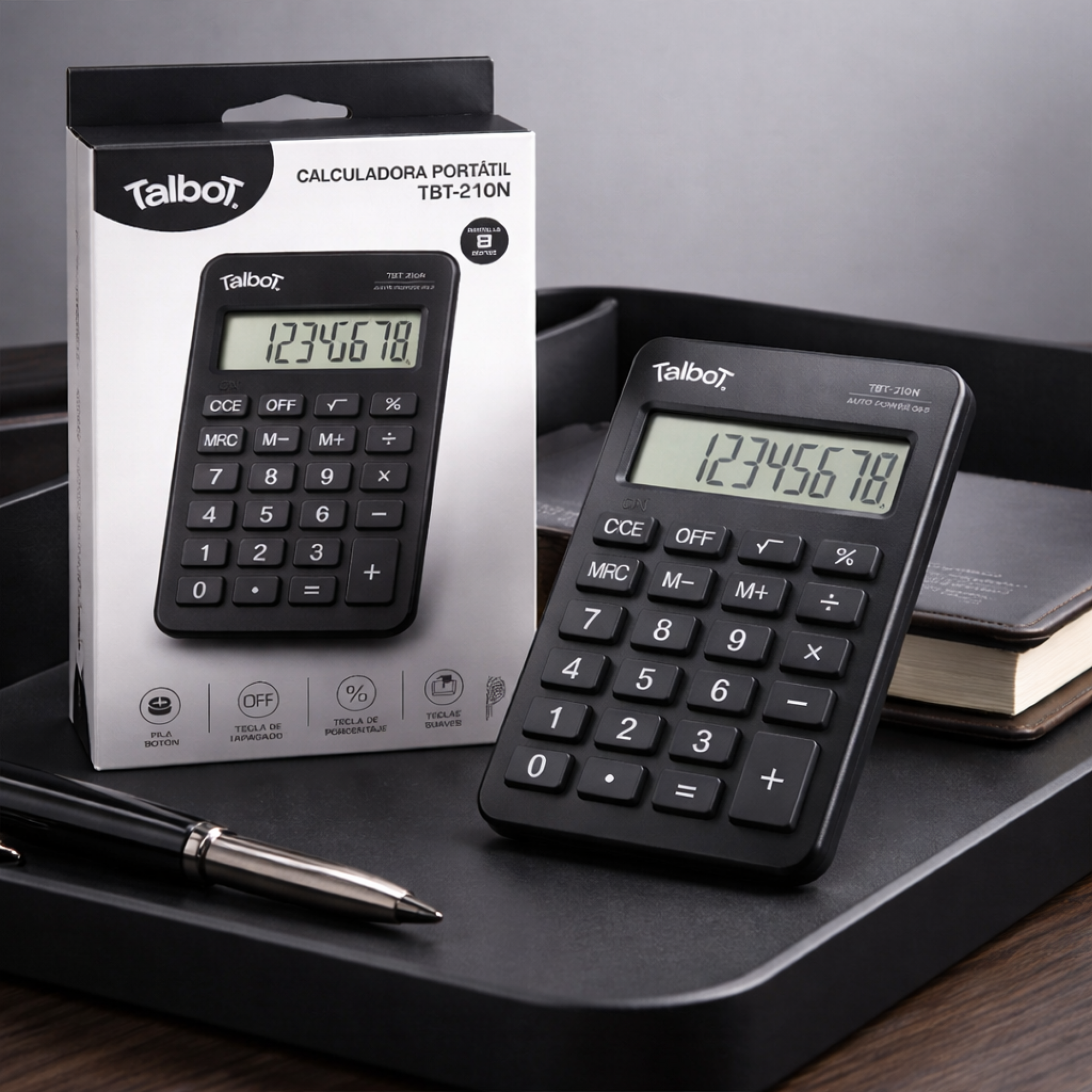 calculadora portatil TALBOT 8 digitos NEGRA TBT-210N