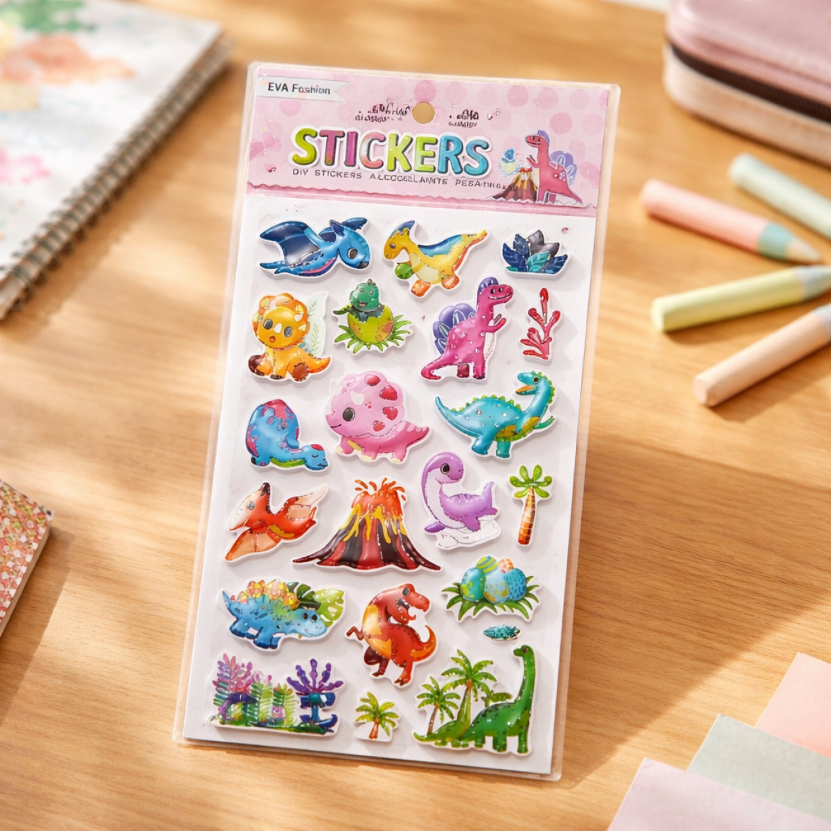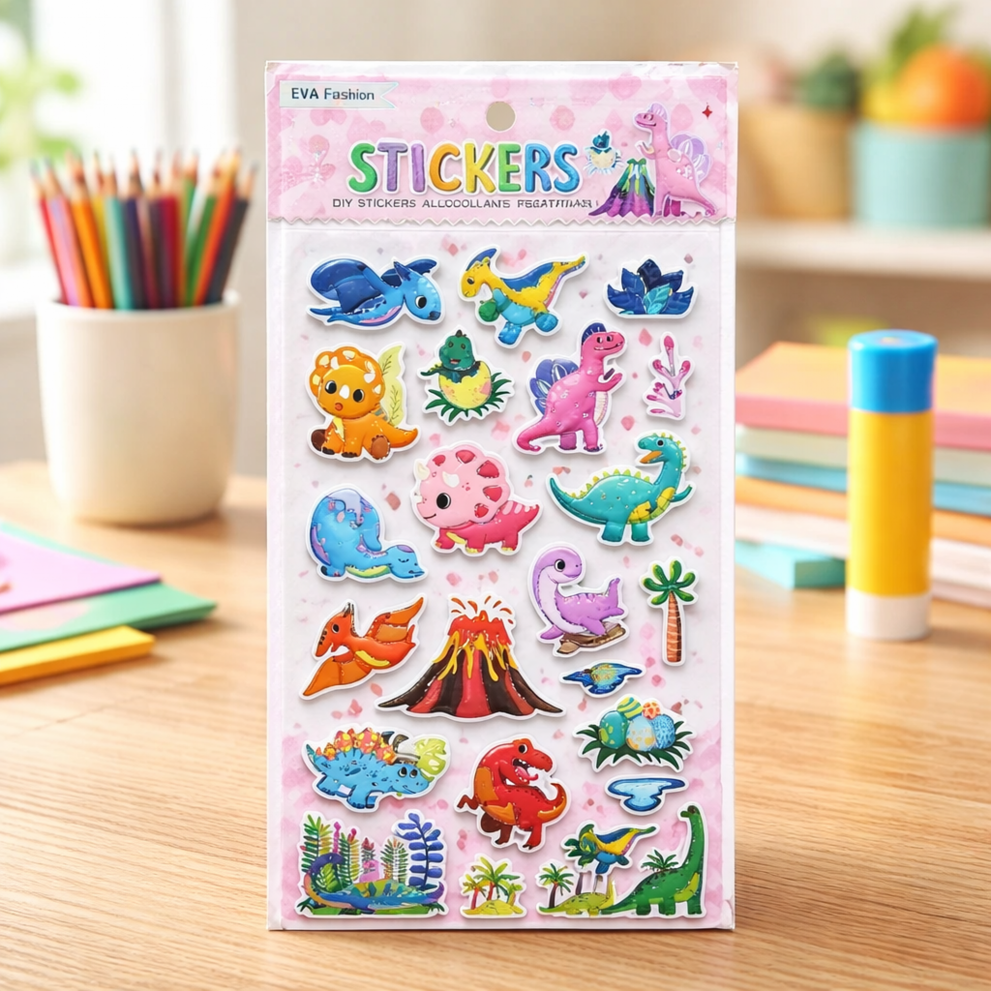 sticker DINO goma eva c/borde holografico art.27318