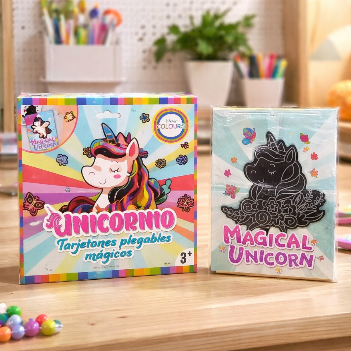 papel magico tarjetones plegable UNICORNIO 6hoja c/1 lapiz madena art.27941