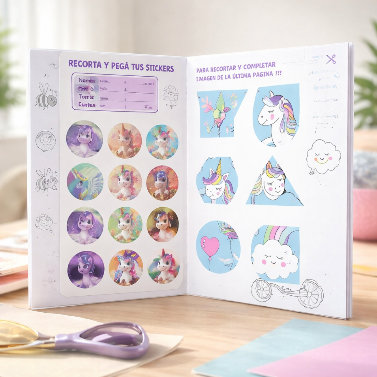 libro actividades y para pintar c/stickers UNICORNIOS